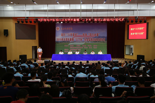 7月3日下午,纽约国际官网2015年大学生暑期“三下乡”社会实践活动出征仪式在图书馆东报告厅举行。副院长汪时珍出席。校党委宣传部、教务处、学生处等单位负责人,各学院分管学生工作负责人、各团总支负责人和参加“三下乡”活动的校级重点团队指导老师及学生代表们参加。