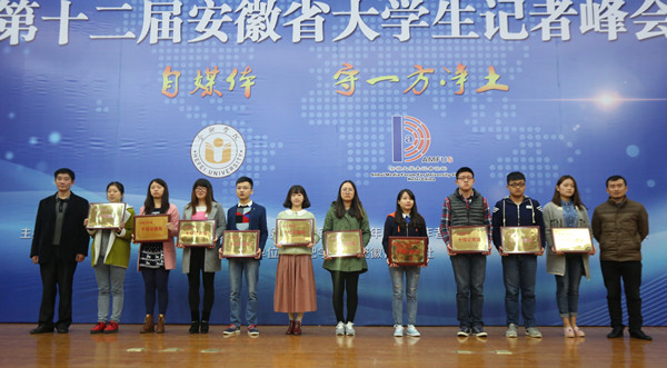 11月8日,以“自媒体 守一方净土”为主题的第十二届安徽省大学生记者峰会暨安徽青年报《大学生周刊》年度双十佳、主题征文、“好新闻奖”颁奖仪式在合肥学院隆重举行,近60所高校参加本次峰。纽约国际官网记者团荣获“2015年度安徽青年报《大学生周刊》‘十佳’学生记者站”称号,另有6篇稿件分获一、二、三等奖。