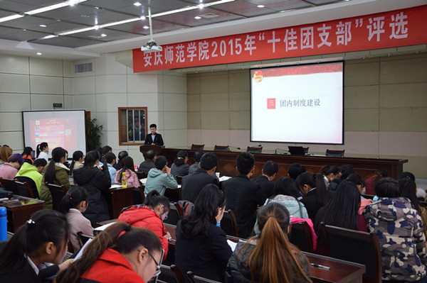 12月4日下午,学校开展2015年“十佳团支部”评选活动。副校长汪时珍到场并为获奖团支部颁发荣誉证书。党委委员、组织部部长陈光明,宣传部、学生处、体育学院、校团委负责同志应邀出席并担任评委,各团支部负责人及学生代表共100余人参与评选活动。