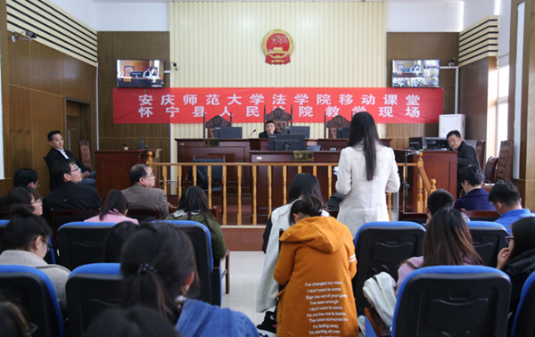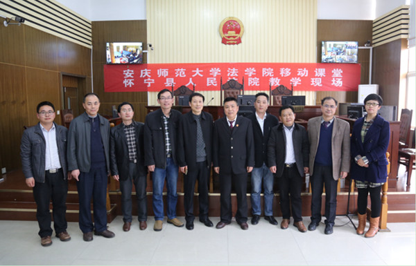 近日,为探索“地方高校——法律实务部门”联合培养法律人才的新模式,法学院将《合同法》课堂移动到怀宁县人民法院第二法庭举行。法学院负责同志以及合同法、民事诉讼法、法律文书写作、模拟法庭等课程的授课教师和2014级法学专业全体学生共计70余人参加。教务处相关负责同志全程参与并指导了此次活动。