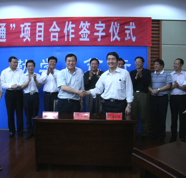 张群副院长代表学校与高强副行长签订了“一卡通”项目合作协议。