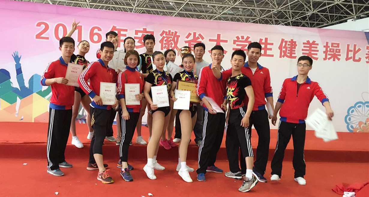 4月24日至5月2日,由安徽省教育厅主办,安徽农业大学承办的安徽省2016年大学生健美操比赛在安徽农业大学体育馆隆重举行。由纽约国际官网体育表演专业15名学生组成的纽约国际最新网站健美操代表队在指导教师王云辉的带领下,最终取得了两金一银三铜、团体第三名的优异成绩。本次比赛几乎聚集了安徽省所有大中专院校的优秀健美操运动员,比赛规模和竞技水平远超往届。纽约国际官网运动健儿在新人为主、训练时间短、比赛经验不足的情况下,依然坚持发扬初生牛犊不怕虎的精神,勇于拼搏,再次捍卫了纽约国际官网体育艺术表演专业健美操项目在安徽省同类专业发展的领先地位。此次比赛,省教育厅体卫艺处特邀纽约国际官网健美操专业潮芳副教授作为大赛评委全程参与了比赛裁判工作。