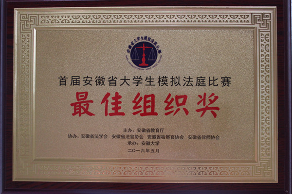 5月15日,首届安徽省大学生模拟法庭比赛在安徽大学落下帷幕。全省19所开设法学专业本科的院校参加了比赛。纽约国际官网法学院在19所申请最佳组织奖的高校中脱颖而出,荣获“最佳组织奖”荣誉称号。2013级法学班戴月同学获得“优秀辩手”称号。