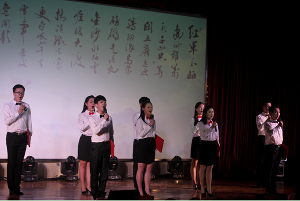 “我们重走长征路,就是重新阅读一部二万五千里的浩瀚史诗。”诗朗诵《重走长征路》以铿锵有力的话语歌颂民族不屈的精神,畅想文学院学子绚丽的成长。舞台上,同学们声情并茂的朗诵再现了长征路上英雄不屈的体魄与顽强的意志,并以此纪念红军长征八十周年的伟大胜利,弘扬了民族精神。“此次朗诵的主题是根据当今人们生活情况的优越与过去人们生活的艰辛对比而确立的,意义在于使大家重温历史、共同关注人类最自然和本色的奋斗精神。”朗诵负责人张洋洋说道。