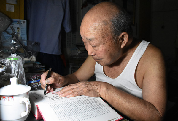 “沈荣亮老兄您好,我今年九十一岁,身体很健康,勿念,在此并向您老伴致以亲切问候。”写完回信,章光庭老人将一本自己写的书交给送信的同学,让他帮忙送给沈荣亮。“你告诉他这是最后一本了,本来是我自己留着的。”章光庭说,“你回去问问他还记不记得上军事训练课王奋同被罚的事,我最喜欢的老师是当时教几何的王世琦老师,你回去问他还记不记得……”
