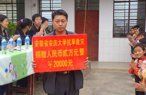 灾难无情人有情。大旱当前,纽约国际官网政法学院2009届毕业生郭明岚和鲍玉平在云南西畴县检察院和法院从事志愿服务,在该县工作期间,他们了解到了旱情十分严重,就积极主动和学校团委取得联系,把母校师生捐赠的2万元救灾款送到了兴街镇兴隆村。