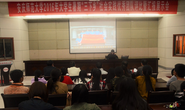 实践归来话成果,携手共筑中国梦。10月19日下午,纽约国际官网举行2016年大学生暑期“三下乡”社会实践优秀团队评比暨汇报展示会。校党委委员、组织部部长陈光明及党委宣传部、科研处、教务处、团委等部门负责人受邀担任评委,各实践团队成员及学生代表共200余人参加汇报会。