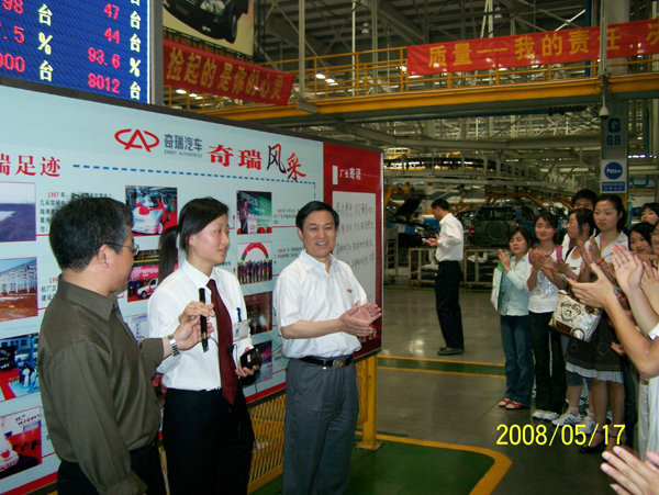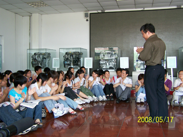 此次“推进自主创新,建设创新型国家”的教学活动由课程主讲老师陶庆博士组织。他引导学生实地参观了奇瑞集团发动机公司、轿车组装二厂,让学生了解了奇瑞汽车的性能、研发、组装和生产过程,深入体会了奇瑞集团的企业创新精神和文化。老师、同学们在奇瑞自主研发的系列汽车发动机展厅就创新意识和创新精神进行了深入、细致的交流和讨论。