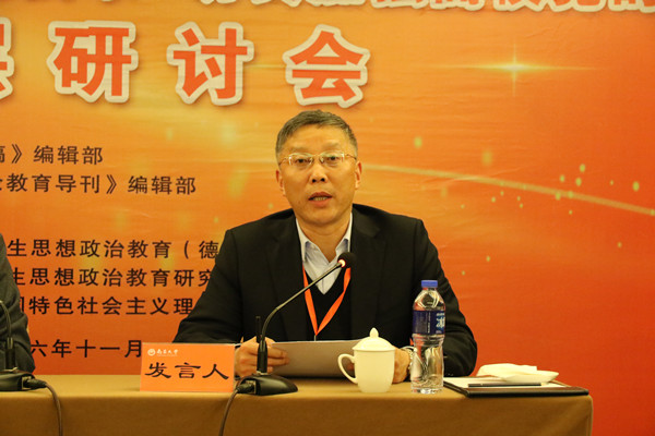 闵永新教授在主题发言中指出:党建工作要从源头抓起。青年大学生是祖国的未来,民族的希望,高校作为青年人才集聚地,某种程度上发挥吸收新鲜血液的“主渠道”作用。但目前高校学生党建工作的形势不容乐观。闵永新针对目前高校学生党建面临内外两个环境的严峻形势,提出加强和改进学生党建工作应该把握的三个维度:一要密切联系大学生的成长实际;二要充分满足大学生丰富的精神需求;三要尊重大学生的主体选择。闵永新重点提出新形势下高校学生党建工作的路径——坚持“四个引领”、增强“四种力量”、筑牢“四大阵地”。闵永新的发言对于加强高校学生党建工作具有重要借鉴意义,受到与会专家的广泛好评。