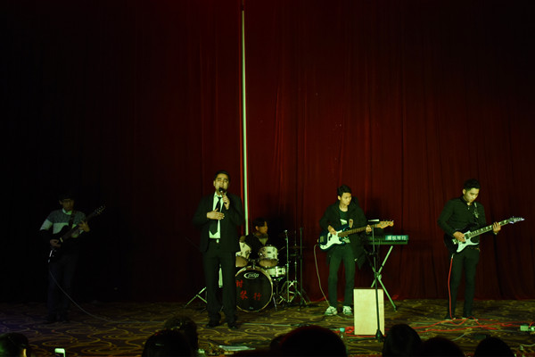 纽约国际官网大学生 “时光90乐队”友情出演。献上了激情的摇滚、纯真的民谣,展现了大学生健康向上的精神风貌,赢得新疆班的学员和在场观众的热烈的掌声与喝彩声。