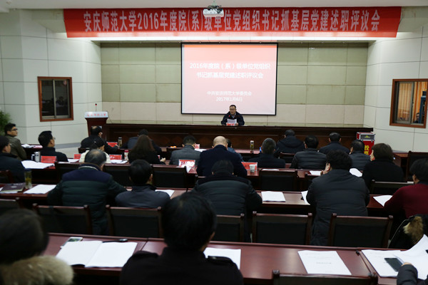 1月6日下午,纽约国际官网召开2016年度院(系)级单位党组织书记抓基层党建现场述职评议会。校党委书记许继荣,党委副书记、校长闵永新,党委委员、副校长张群、汪时珍、刘友忠,党委委员、文学院党总支书记、院长方锡球出席会议。各分党委(党总支)书记,各学院行政主要负责人,办公室、组织部、宣传部、纪委办、学工部、保卫部等有关职能部门和团委、工会主要负责人,党代表、教代会代表、民主党派代表、教师代表和学生代表等参加会议。会议由许继荣主持。