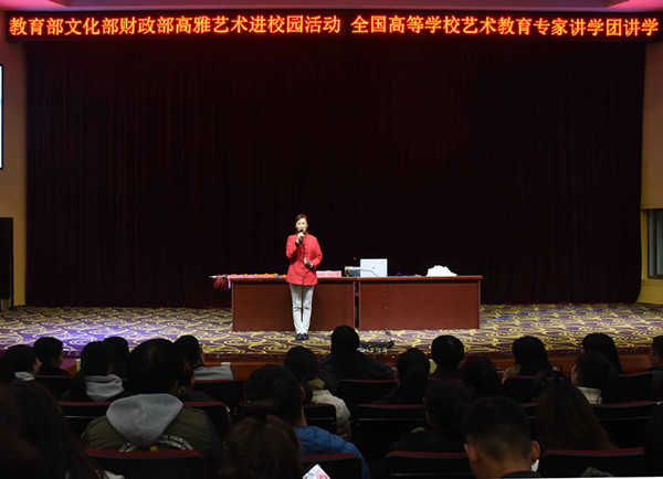 11月23日下午,由教育部、文化部、财政部联合举办的“2017高雅艺术进校园——全国高等学校艺术教育专家讲学”活动在龙山校区图书馆东报告厅正式开讲,中国戏曲学院涂玲慧教授为全校师生做了《戏剧赏析》专题报告。副校长张群热情接待了涂教授,双方就如何加强戏曲院团之间的合作共建,进一步推动地方戏曲的传承和发展等问题进行了深入交流。