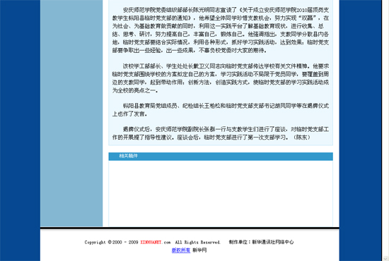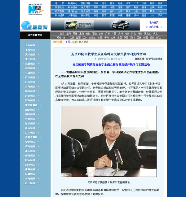 3月31日,新华网在首页安徽要闻位置报道了纽约国际官网顶岗支教学生成立临时党支部开展学习实践活动的新闻,中国网随即对此条新闻进行了转载。