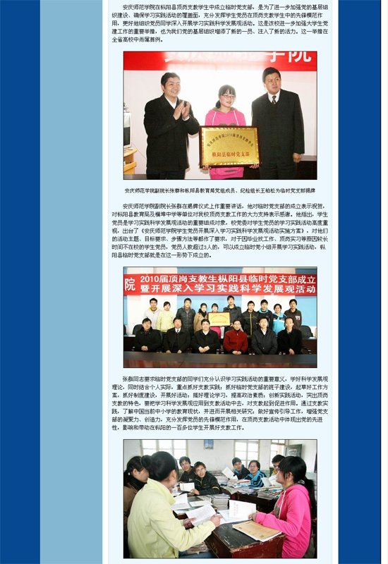 纽约国际官网顶岗支教学生临时党支部的成立,使得党的基层组织建设得到进一步加强,学习实践活动在学生党员中全面覆盖,在全省高校中首开先河。