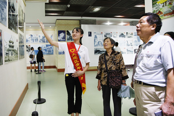 “这是吕八街,那是鸭儿塘,这些地方我们以前都去过啊。”一位参观的老奶奶看着照片激动地说,“安庆现在的变化真的很大,有些地方现在我们都认不出来了,看着照片才有些印象,我也要让我的孩子来看看,让他们记住这些历史。”来美术馆参观的人,中年老人占了很大一部分,但也不乏过来参观的年轻人,他们在老照片前留影合照,纪念逝去的时光和变化的城市。