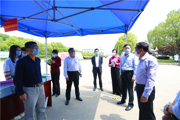 校党委书记许继荣,校长闵永新,副校长汪时珍、刘友忠,纪委书记胡腊香,校党委常委、研究生院院长吴琼、校党委常委、教务处处长苏本跃、校党委常委、组织部长余精华一行前往返校入学检查点和学生食堂,现场检查指导学生返校报到各项工作。