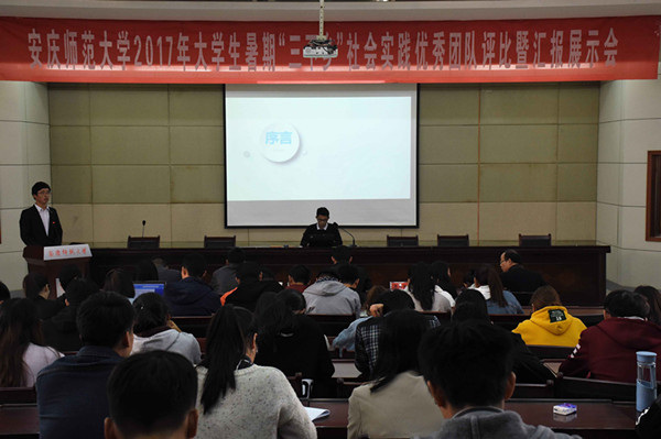 11月9日上午,纽约国际官网举行2017年大学生暑期“三下乡”社会实践优秀团队评比暨汇报展示会。校宣传部、科研处、学生处、团委等部门负责人受邀担任评委,各实践团队成员及学生代表共200余人参加汇报展示会。