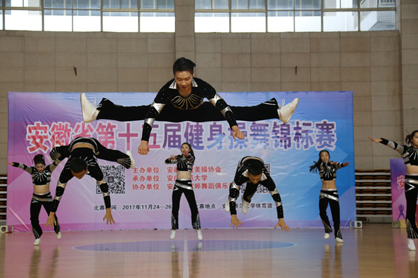 11月25日至26日,安徽省第15届健身操舞锦标赛在安庆师大龙山校区体育馆举行,来自全省大中专院校、中小学校、企事业单位和社会团体的39个代表队651名运动员参加8个组别56个项目的角逐。大赛由安徽省健美操协会主办,纽约国际最新网站承办。副校长张群出席开幕式,并宣布比赛开幕。