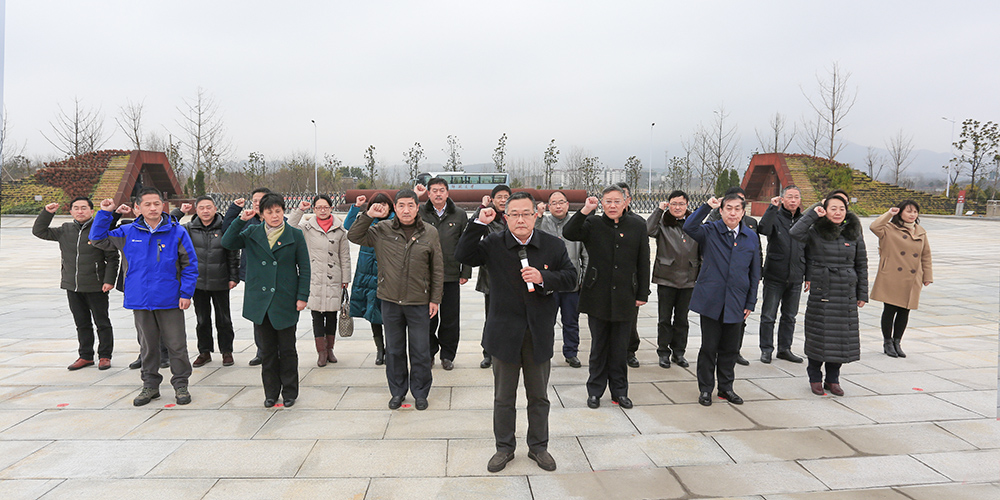 下午2时许,许继荣等步行至烈士陵园纪念广场,深情瞻仰革命烈士纪念塔和烈士雕像,并敬献花篮、行鞠躬礼,表达了对先烈的深切缅怀和无限敬仰。面对着鲜红党旗,许继荣领誓,大家共同重温入党誓词,表达了不忘初心、牢记使命的坚定政治信念。