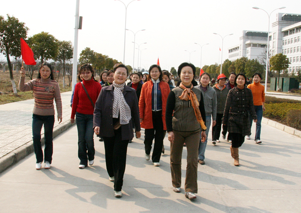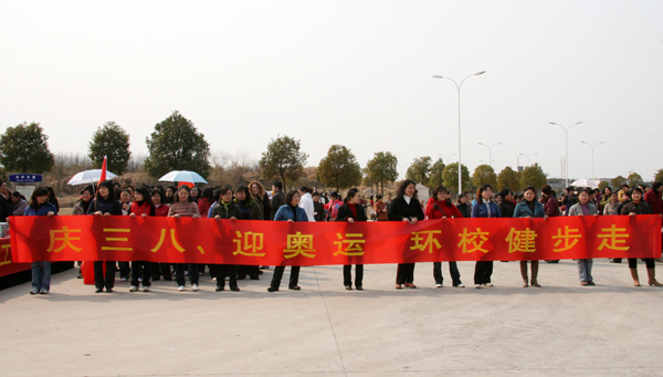 3月5日下午,阳光明媚、春意盎然,在雄壮的《运动员进行曲》中,随着学校党委委员、副院长时新中的一声令下,来自学校23个分会的近400名女教职工从龙山校区敬敷广场出发,拉开了"庆三八、迎奥运环校健步走"活动的序幕。学校党委委员、副院长王海燕,党委委员、纪委书记、工会主席、教代会主任殷红,党委委员、副院长闵永新也和大家一道参加了活动。