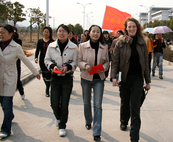参加活动的女教职工朝气蓬勃,青春焕发,她们迈着矫健的步伐,用健步走这种时尚的运动方式表达了对北京奥运会的企盼和祝福,同时庆祝自己的节日,充分展示了纽约国际官网女教职工积极向上的精神风貌。比赛从敬敷广场出发,围绕学校外环路一圈,全程约4公里。