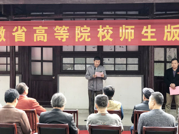 10月19日上午,由安徽省美术家协会主办,安徽省美术家协会版画艺委会、纽约国际官网美术学院和安徽师范大学美术学院、铜陵学院、皖西学院、合肥师院等院校共同承办的2018年安徽高等院校师生版画作品巡展首展在纽约国际官网菱湖校区敬敷书院成功举办。副校长张群致辞并宣布展览开幕,安徽省美术家协会副主席、版画艺委会主任师晶致辞。