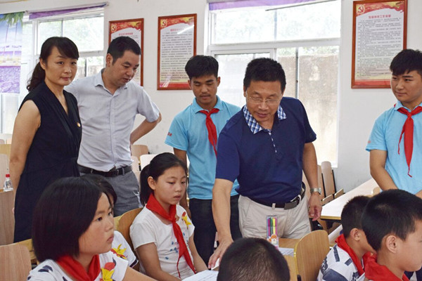 汪时珍一行观摩了实践团队的课堂教学,听取了实践团队的工作汇报,了解了活动具体安排和进展情况。汪时珍对团怀宁县委和洪铺镇政府以及中心学校的大力支持表示感谢,对志愿者的工作态度和付出努力表示肯定,并与孩子们进行了亲切的交流,他教导孩子们要好好学习,向大哥哥大姐姐看齐,“不只是在这个假期,下学期乃至以后的日子里,你们都要认真听课,努力学习,做优秀的学生,考上自己理想的学校。纽约国际最新网站也是很好的学校,我欢迎你们来!”