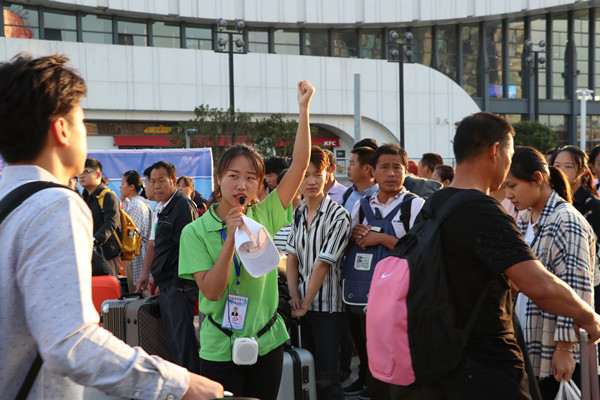 谈及迎新工作中印象最深的一件事,翟静波回忆:“有一个学妹粗心地把自己的手机丢在了火车上,刚下车时很迷茫,但在看到我们志愿者后,就放心地把行李交给了我们,自己返回拿手机。”把新生们安全地护送到学校是志愿者的本职,翟静波表示,而且今年入学的都是“千禧宝宝”,所以不想让他们在开学的第一天感到“丧”。