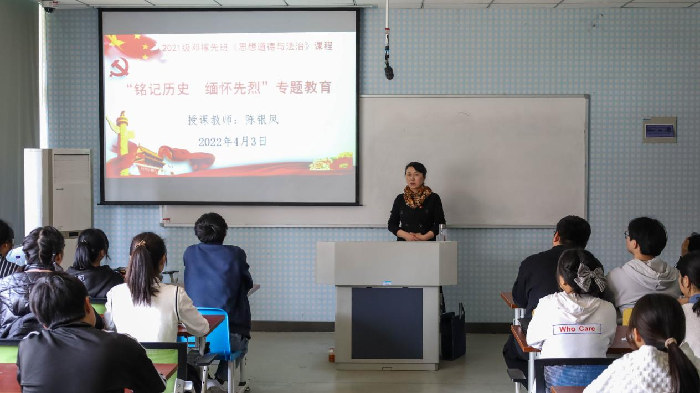 4月3日上午,该班的40名学生排列整齐,身着朴素,面对着稼先广场中的邓稼先雕像深深鞠躬。“‘9’是邓稼先远渡重洋,学成之后在短短9天内归国兑现学成必回国的承诺;‘28’是邓稼先隐姓埋名28载,中国的第一颗原子弹到第一颗氢弹研制用时两年零八个月,远超美国、法国与苏联;‘596’是我国第一颗原子弹的工程代号……”雕像前,该班《思想道德与法治》课授课教师陈银凤用一串数字讲述了邓稼先的故事,诠释了“两弹一星”精神所蕴含的丰富内涵。