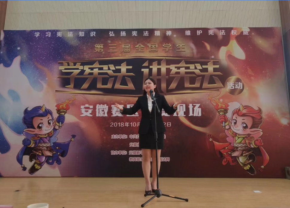 学校高度重视此次“学宪法 讲宪法”活动,广泛动员,精心谋划,细心部署,组织开展了全校学生“学宪法 讲宪法”演讲比赛;充分运用教育部全国青少年普法网“网上学宪法”栏目、安徽教育资源平台提供的网络学习教育资源,组织学生开展宪法知识学习,营造浓厚的学习宣传氛围,积极引导广大青年学生自觉成为宪法的忠实崇尚者、自觉遵守者和坚定捍卫者;法学院王欣老师悉心指导,最终取得了演讲比赛佳绩。(学生记者 邱焱平)