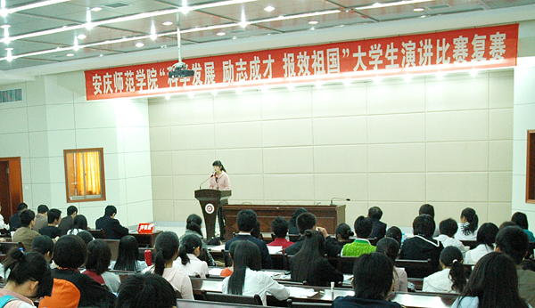 4月24日下午,由校学习实践活动领导小组办公室、学生处、团委主办的“科学发展、励志成才、报效祖国”大学生演讲比赛复赛,在龙山校区行政楼一楼会议室举行。校党委组织部、宣传部、文学院、团委、学生处有关领导和老师担任评委,学生处负责同志、各院系团总支负责人、辅导员代表和学生代表共110余人观看了比赛。