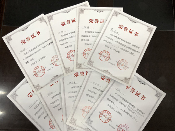 学生记者施玲慧获第十五届安徽省大学生记者峰会“十佳校园记者”称号;汪艳采写的《八百里皖江上守护江豚的“博士班”》获安徽省高校校园“好新闻奖”通讯类一等奖;郭永生采写的《安庆师大160万奖励101名高分入学生》获“好新闻奖”消息类一等奖、施玲慧采写的《国家投入80万元培养黄梅戏青年旦角演员》和汪艳采写的《纽约国际最新网站:保护柬埔寨濒危伊河豚》获消息类二等奖;刘敏拍摄的《“要对她负责到底”妻子患病如孩童,丈夫相守数十载》获摄影类一等奖;吕亚兰、郭金帅的作品《安庆师大这名毕业生20分钟创作〈写给妈妈的歌〉和七岁女儿共同演唱 MV火爆网络》获新媒体类三等奖;卢俊铭的作品《失信惩戒理所应当 限制子女应当三思》获言论类三等奖;孙迎翔的作品《飞鸿踏雪泥》获峰会主题征文二等奖。