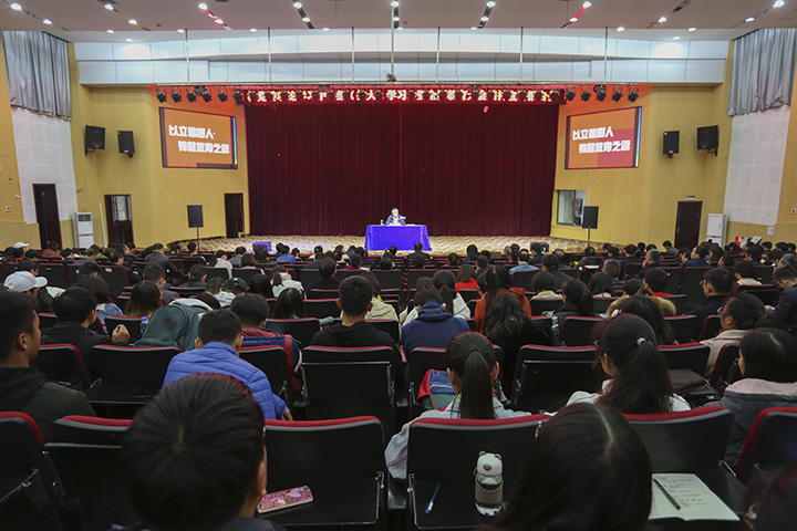 11月16日下午,校党委理论中心组(扩大)学习会暨全国教育大会精神宣讲报告会在图书馆东报告厅举行,全省学习宣传贯彻全国教育大会精神宣讲团成员、校党委书记许继荣主持学习会并作宣讲报告。校党委理论学习中心组成员,全校处级领导干部,全体教研室主任、全体辅导员和各学院学生代表300余人聆听了报告。