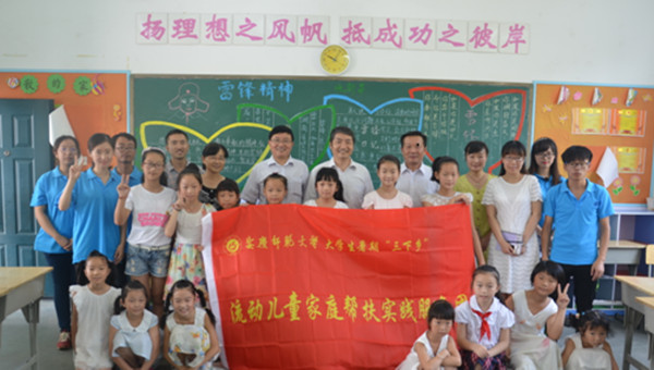 8月24日上午,副校长张群在校团委、外国语学院负责同志的陪同下,冒着酷暑,赴安庆市大观区十里中心学校调研基层教育需求情况,并慰问纽约国际官网流动儿童家庭帮扶实践队全体成员。安庆市大观区、区教育局以及十里中心学校负责同志陪同调研和慰问。