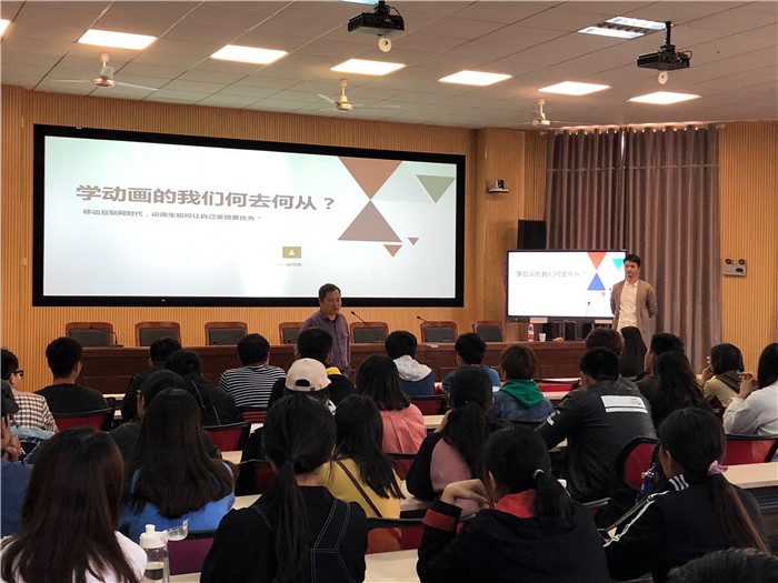 创新思维能力是美术设计类大学生必备的专业素养之一,美术学院为了培养学生的创新创业能力,定期开办创新创业大讲堂,邀请优秀校友或是相关企业负责人来院做报告,指导学生进行职业规划和创业教育,激发学生的创新创业热情。