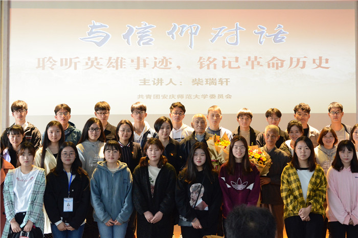 3月20日,在校团委举办的“与信仰对话——聆听英雄事迹,铭记革命历史”主题讲座中,淮海战役亲历老兵柴瑞轩为大学生们讲述淮海战役胜利背后的故事,并现场朗读了写给在战役中牺牲的三哥的一封家书。
