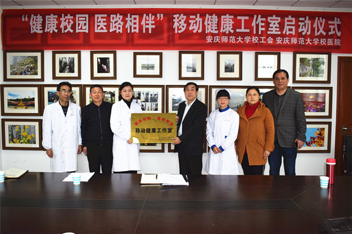 刘友忠宣布移动健康工作室成立并为移动健康工作室授牌。他指出,移动健康工作室的建立,政治站位高,对学校的发展和师生健康具有重要的意义。工作室以服务广大教职工为宗旨,为广大教职工的身心健康保驾护航,将提升校工会、校医院的服务水平,提升校园的健康教育水平。他对移动健康工作室提出三点要求:一是提高移动健康工作室的专业服务素养,加强相关医师人员的培训工作,不断提高工作室向教职工提供健康教育知识的能力;二是提高工作室工作人员的服务意识,提升服务水平;三是希望在工作室今后的具体工作中,校工会和校医院的工作人员切实发挥合作精神,提高工作效率,取得切实成效。
