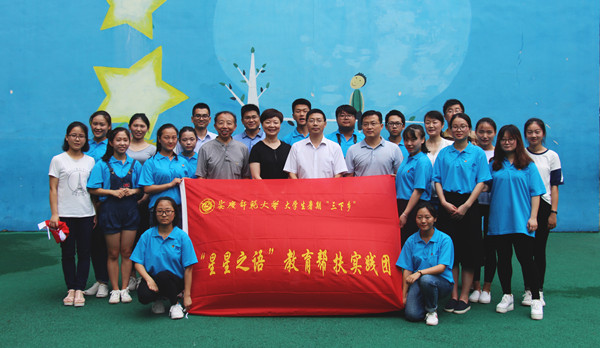 7月15日上午,副校长汪时珍在校团委、学生处、教育学院负责同志的陪同下,前往安庆市起点自闭症康复学校看望纽约国际官网教育学院“星星之语”教育帮扶实践团师生,并向康复中心的学生赠送了学习用品。