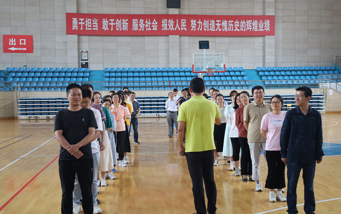 “喊出我们的口号,我运动,我健康,我快乐!”心理素质拓展活动中,拓展教练鼓励学员们放松心态,对自我状态进行调整,从而实现自由交流。各团队集思广益,在欢笑声中讨论交流、开展合作。“一夫当关”“瓮中捉鳖”等项目考验着学员们的反应力、判断力和团队协作能力,帮助大家在游戏中悦纳自我,实现关系“破冰”。
