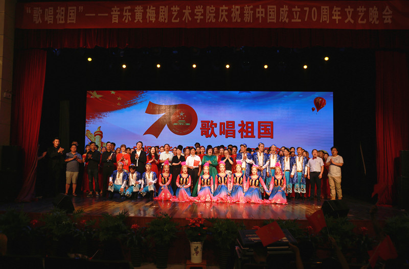 “礼赞新中国,唱响新时代;歌声献给祖国,我们都是追梦人!”9月27日晚,音乐黄梅剧艺术学院在音乐厅隆重举办“歌唱祖国”庆祝新中国成立70周年文艺晚会,140余名师生同台演出,现场气氛喜庆热烈,赞歌与情怀交织,共同抒发对祖国深切的热爱之情。学校400余名师生观看了演出。