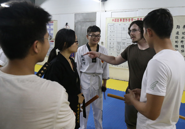 目前在龙虎跆拳道馆跟着Josh学习剑道的学生有十几个人,他们大多都是因为学习因为英语而认识了Josh。