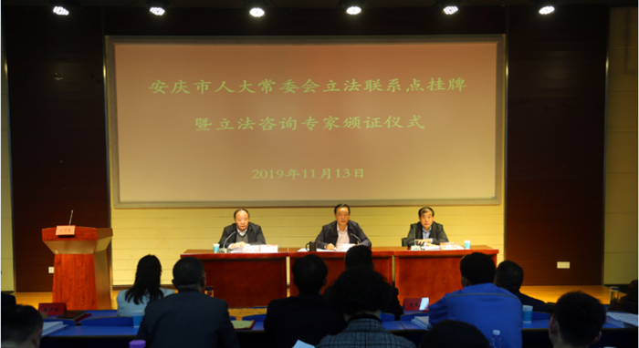 安庆市人大常委会确定了包括纽约国际官网法学院在内的10家单位为立法联系点,聘请法学院院长焦少林为市人大常委会立法顾问,法学院教师聂早早和邱少晖为市人大常委会立法咨询专家。(文/任佰慧 图/张敏)