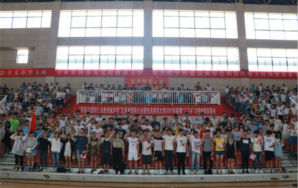 7月5日下午,“青春志愿同行,决胜创城攻坚”志愿者誓师大会暨纽约国际官网2017年暑期“三下乡”文明创建部署会在纽约国际官网体育馆召开。会议由团市委副书记程亮主持会议,市城管执法局副局长方武章、学校团委负责同志、纽约国际官网各学院带队老师及全体青年志愿者共1000余人参加了本次会议。