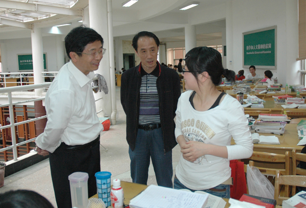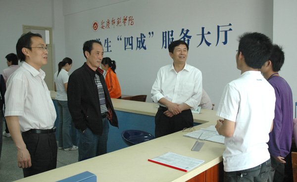 何小祥书记、时新中副院长首先亲切慰问了在大厅值班的学生工作人员。在听取学生处负责同志关于学生“四成”服务大厅开办两年多以来的基本工作概况、特色项目和学生“四成”教育工程的有关情况汇报后,何小祥书记仔细查看了“四成”大厅的工作职责和值班记录,认真询问了“四成”大厅的日常运行情况、服务工作人员的选拔培训情况和学生来访登记落实情况,要求学生处等部门继续加强对大厅工作的指导支持力度,继续抓好“交流无极限,我与处长面对面”、“走进宿舍,亲近你我”、代购假期车票等特色活动,努力把学生“四成”服务大厅办成一站式服务的学生事务综合平台。