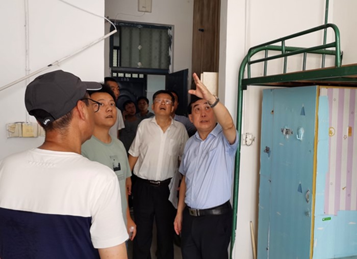 刘友忠在检查中强调,要坚持把疫情防控的重要任务贯穿到新学期开学初后勤保障工作的全过程和各方面,把常态化疫情防控的各项措施落细落小落实。要坚持安全施工、文明施工,规范操作,严格落实工程进度,严把工程质量,确保项目如期完工。要坚持问题导向,加强督查巡查,层层追踪,逐级落实,特别是学生宿舍维修,监理单位、工地代表和宿舍管理员要深入维修一线,认真查找问题,督促整改到位,确保高质量地如期完成各项维修改造任务。要增强服务意识,扎实做好餐饮、卫生保洁、消毒通风、物业、洗浴、校园交通等服务保障工作,给阔别母校半年有余、即将返校的莘莘学子带来新的气象、新的面貌和新的希望。(撰稿、摄影:刘广志 审核:王先民 陈秀)