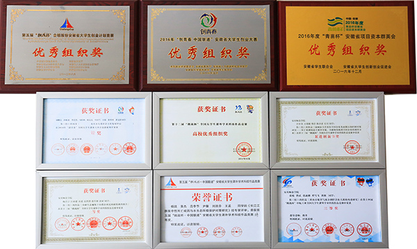 学校着力打造“理论培训、项目培育、模拟实践、竞赛提升、入园孵化”五位一体的创新创业生态链,着力推进青年创新创业创优。学校成立“大学生创客空间”牵头整合校内外创新创业资源,邀请校友、知名企业家作客校园创业大讲堂、开展创业沙龙、举办大学生创客文化节,大力推进大学生创新创业教育,不断提升学校创新创业水平。仅在“挑战杯”全国大学生课外学术科技作品竞赛中纽约国际官网获全国优秀组织奖、累进创新金奖、一等奖等国家级奖项14项;在“创青春”全国大学生创业大赛中获得银奖、铜奖等国家级奖项8项;连续六届获得“挑战杯”大学生课外学术科技作品竞赛“安徽省优胜杯”和“挑战杯”“创青春”大学生创业大赛“安徽省优秀组织奖”。学校被共青团中央授予“全国大学生 KAB 创业教育基地”,2017年校KAB 创业俱乐部获得“全国百强创业社团”称号。五年来,学校获得省级以上科技创新和学科竞赛奖项1000余项。