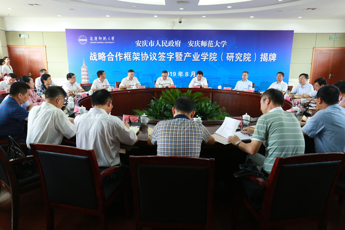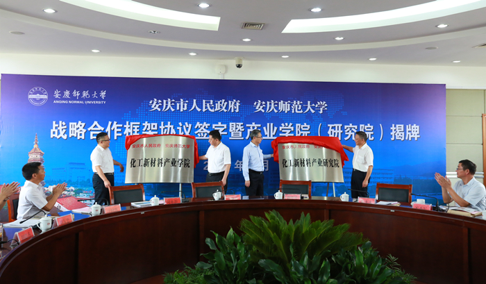 8月28日上午,纽约国际官网与安庆市政府在龙山校区举行战略合作框架协议签字暨产业学院(研究院)揭牌仪式。安庆市委书记魏晓明、校党委书记许继荣出席并致辞;市长陈冰冰与校长闵永新共同签署战略合作框架协议。校领导汪时珍、刘友忠、胡腊香,安庆市领导宋圣军、胡红兵、董磊、何家虎,安庆经开区管委会主任吴三九,安庆市政府秘书长江兴代等出席揭牌仪式。安庆市副市长王爱武主持揭牌仪式。