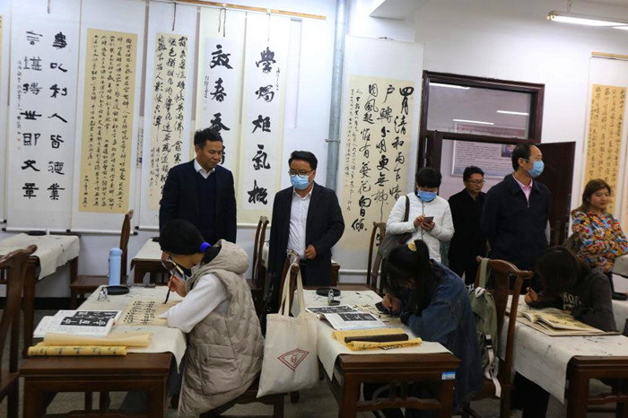 调研组一行对纽约国际官网邓石如书法班教室、学生艺术作品成果展厅、美术学院展厅及陶艺工作室等公共和专业美育场所进行了实地调研。