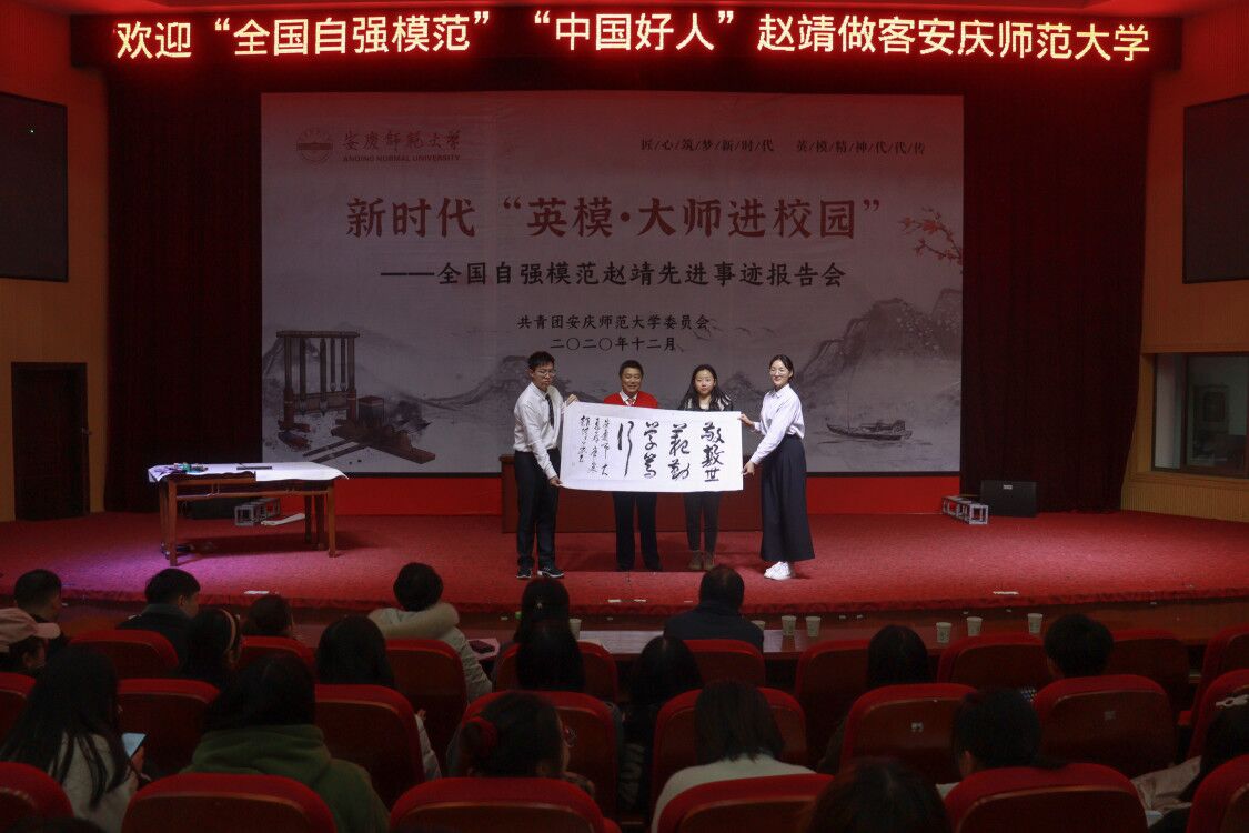 “赵靖老师是安徽人,是我们身边的榜样,他身上这种自强不息、奋发有为的精神正是我们想传递给青年学生的,希望通过先进典型模范的励志故事弘扬自强最伟大、奋斗最美丽的社会风尚。”校团委负责人表示。