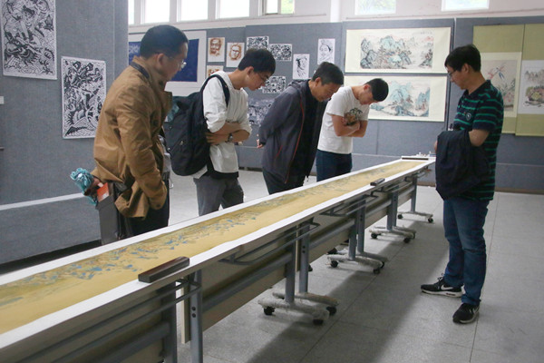各种类型的中国画,色彩浓淡皆别有韵味;黑白鲜明冲击感强烈的雕版画,或花旦、或工民、或儿童,形象各异;厚厚颜料涂抹的油画,有的风格清新,有的凝重端庄。除此之外,还有很多水粉画,动漫手绘,电脑动画设计,手机APP设计图。